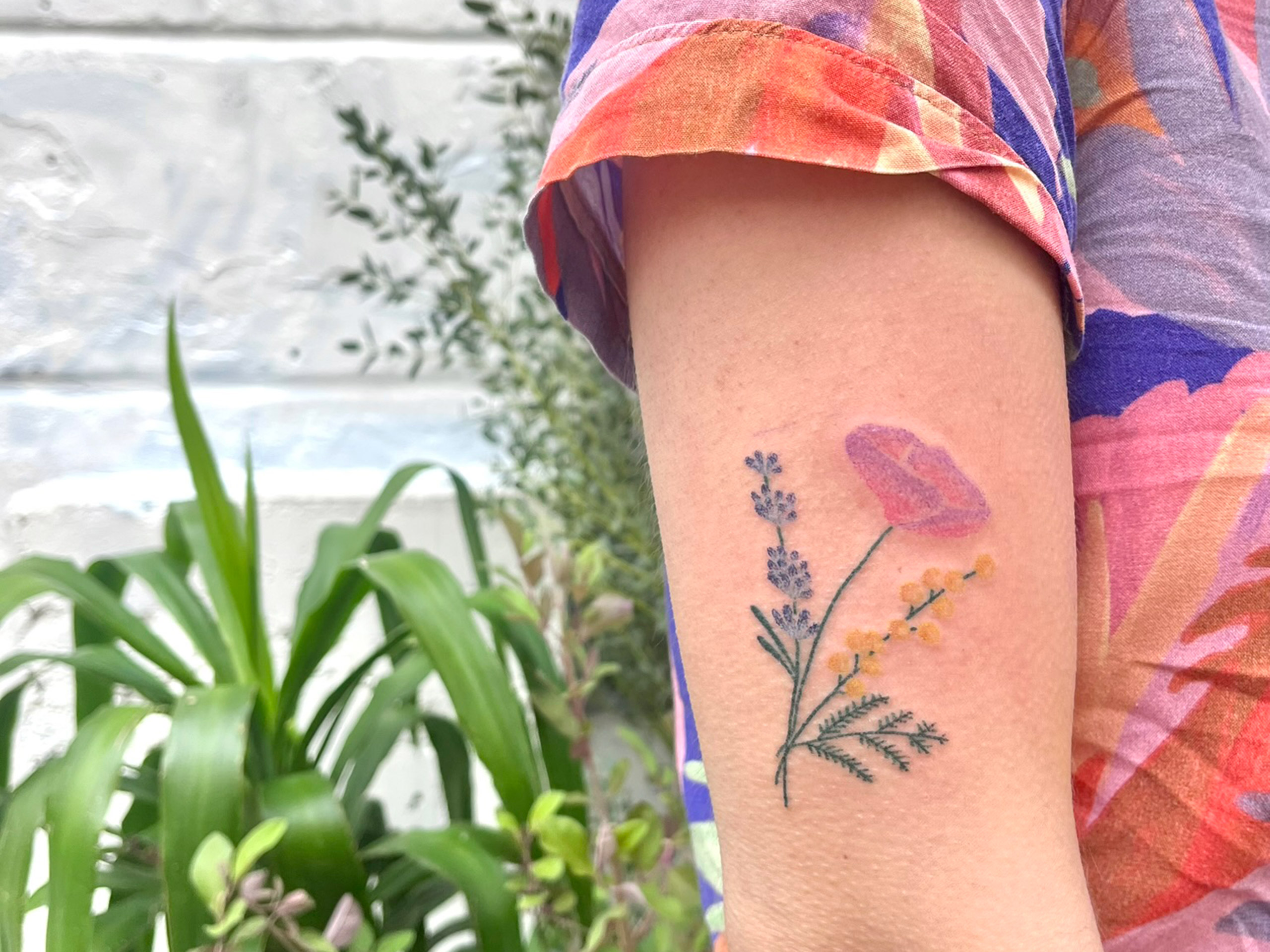 Je tatoue en handpoke, une technique manuelle qui donne toute sa place au soin, au lien. À l’inverse d’une mouvance sociétale globale qui court après toujours plus de vitesse et d’instantané, je vous propose de la lenteur pour un moment chaleureux, un moment pour soi. Le handpoke tel que je le pratique, offre au corps et à l’esprit des séances communément moins douloureuses, une précision et un savoir-faire pour des tatouages tout en finesse et en nuances.